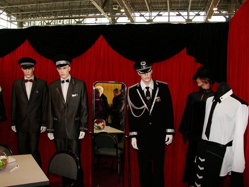 Помимо траурной одежды, на выставке были представлены образцы формы для сотрудников похоронных предприятий. Многочисленные манекены на стенде Новосибирского завода специальных изделий были одеты в костюмы церемониймейстеров и похоронных директоров, а также униформу для водителей катафалков.