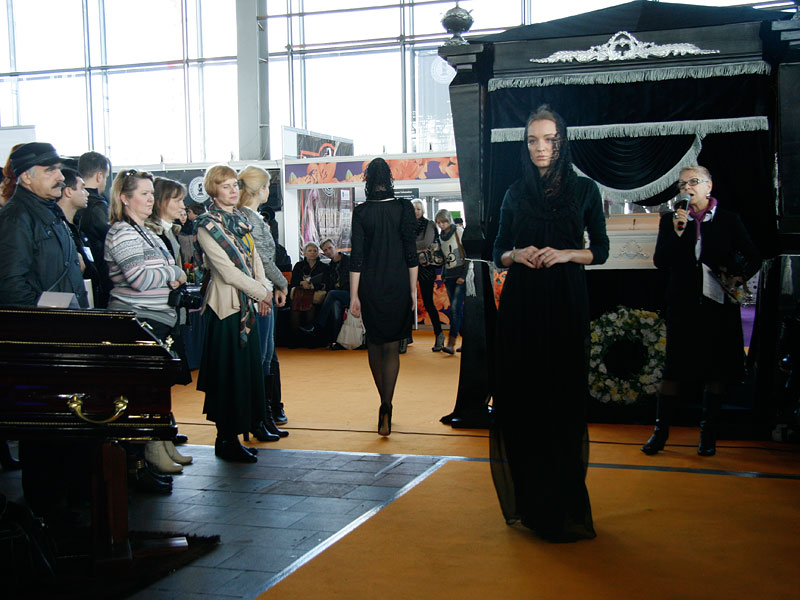 После официального открытия выставки прошло традиционное дефиле траурной одежды, организованное при поддержке Международной ассоциации «Союз дизайнеров», Творческого Союза Художников России и Российской академии художеств. Вниманию зрителей был представлен проект «Бессмертие»: молодые российские дизайнеры продемонстрировали свое видение траурной одежды. Дефиле сопровождалось вокальным выступлением новосибирского дуэта «Альфа и Омега».